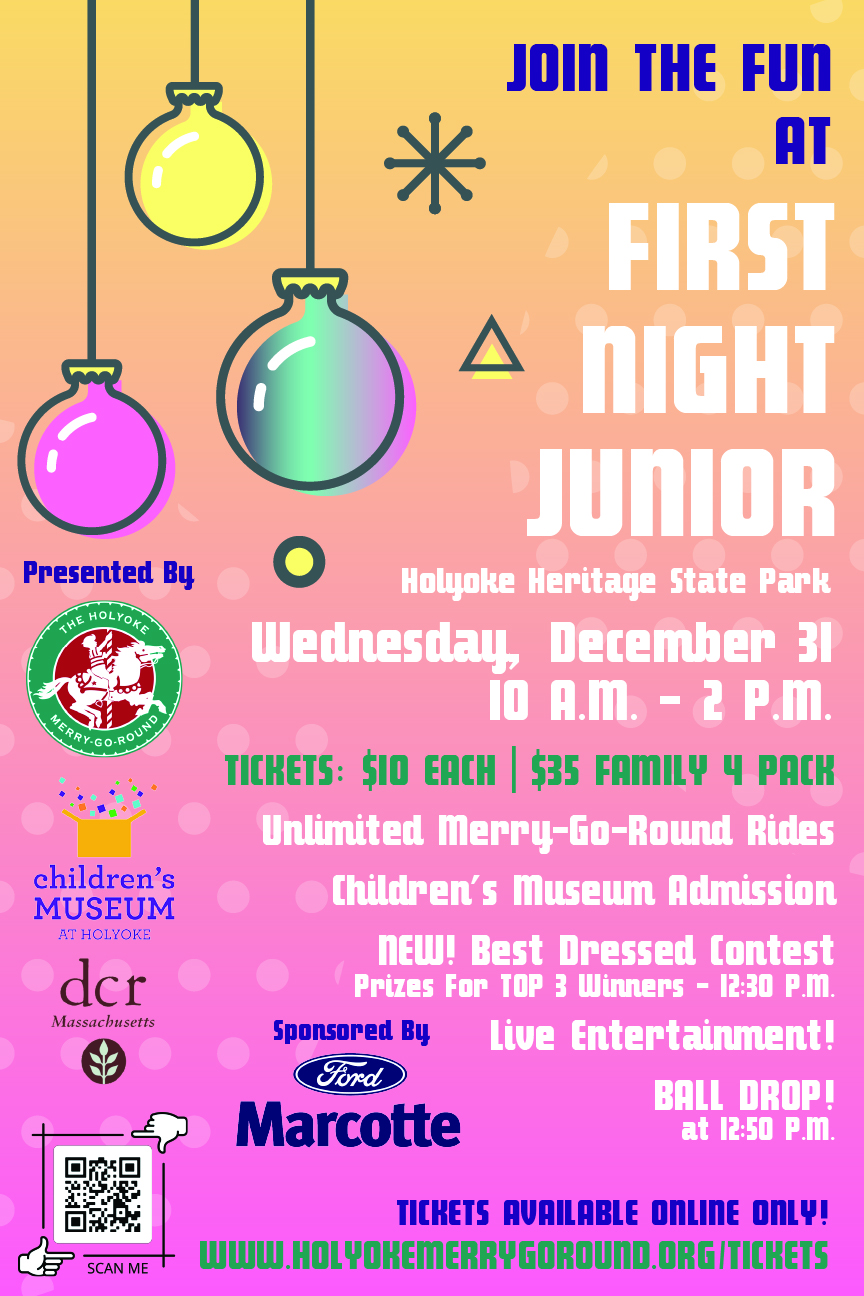 Please bring your Order Confirmation Email (printed or phone) with you to the Holyoke Merry-Go-Round or Holyoke Children's Museum on the day of event to receive your wristband!